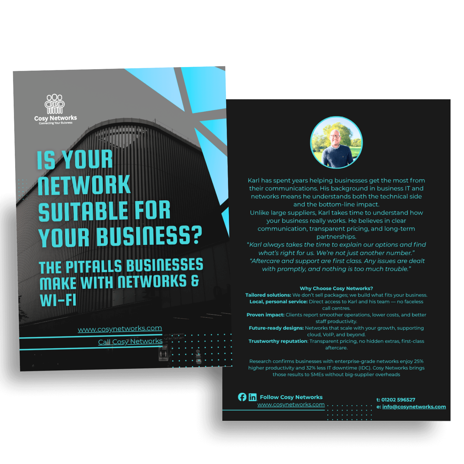 At Cosy Networks, we provide both structured LAN cabling and wireless solutions designed around your space, your people, and your future growth.